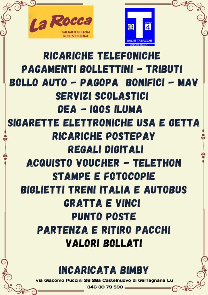 Un sito di Carlo F. Web Solutions | Ristorante pizzeria La Rocca © 2025 Tutti i diritti riservati | Privacy policy Cookie policy | contributi ricevuti